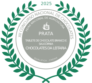 Tablete de chocolate Branco 30% cacau e Salicórnia da Ria – Uma tablete com um toque salgado sem usar sal, mas sim com um substituto dele. A salicórnia acaba por dar a tablete um sabor e um aspeto visual invulgar. Produzido com chocolate branco que é o que ressalta mais o sabor da salicórnia.